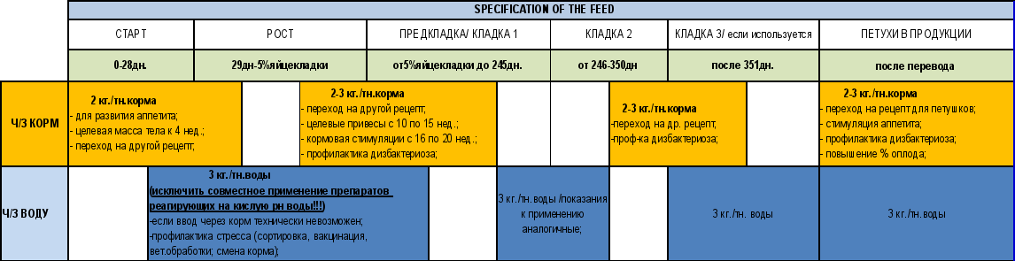 - Подкисление корма и формирование устойчивой/стабильной/ кислой рн в ЖКТр с/х птицы.