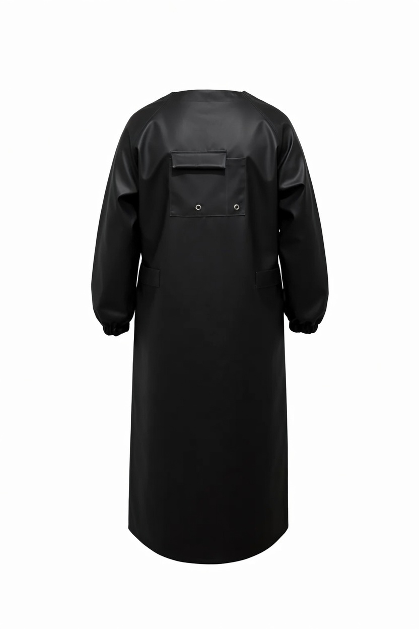 Удлиненный крой (130 см) обеспечивает защиту костюма до голени, а наличие рукавов предохраняет руки и предплечья от брызг. Универсальный размер (подходит на 44–56) и возможность регулировки позволяют использовать фартук поверх теплой спецодежды в холодное время года.