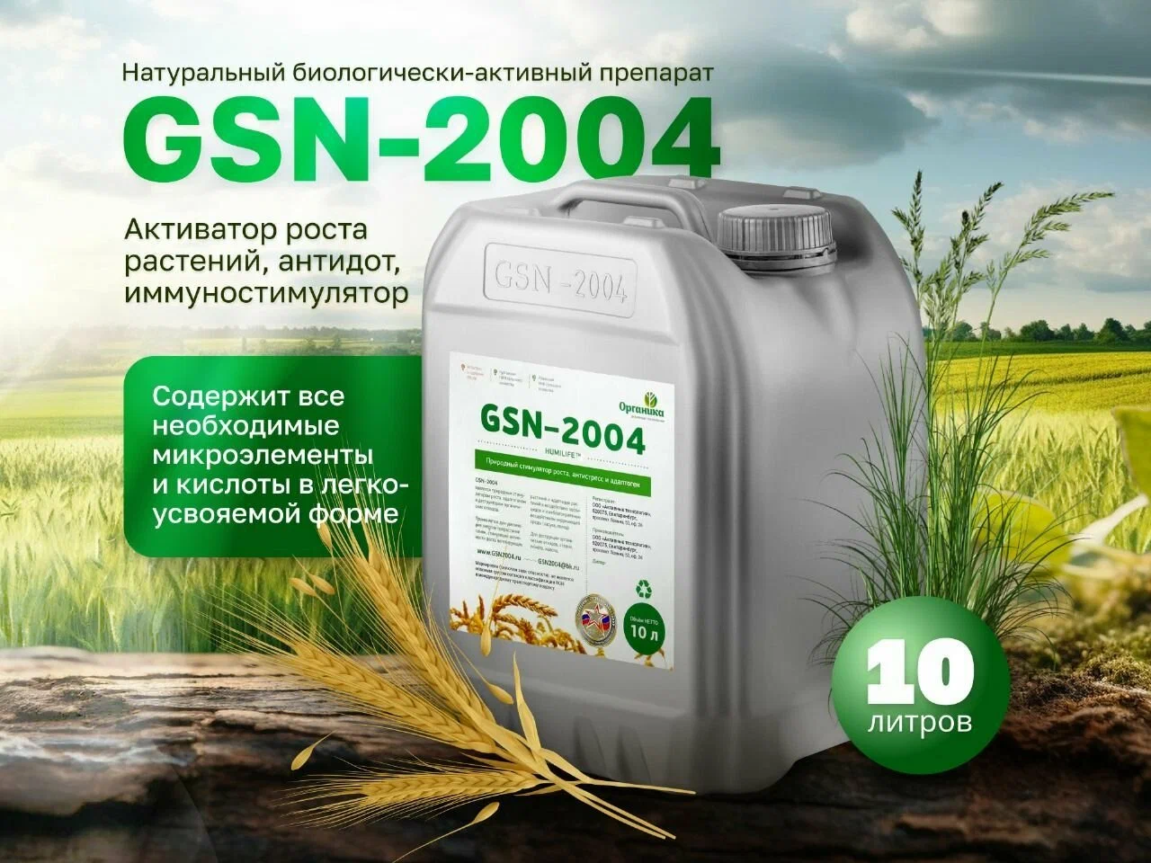 Препарат GSN-2004 основан на специфических обменных процессах — это позволяет клеткам растений на 99% усвоить находящиеся в нем полезные и необходимые органические элементы (углеводы, водорастворимые соли гуминовых кислот, аминокислоты, карбоновые кислоты), фитогормоны, микро- и макроэлементы, не вызывая изменений на генетическом уровне.